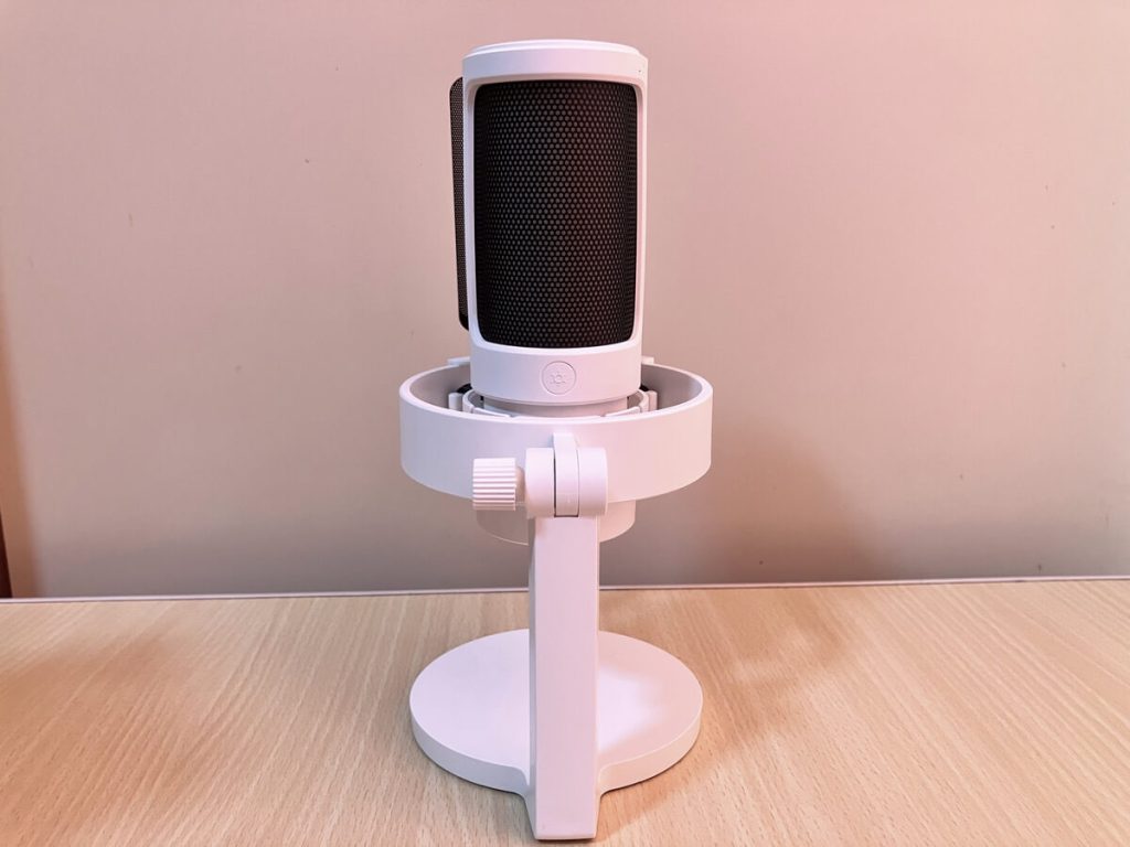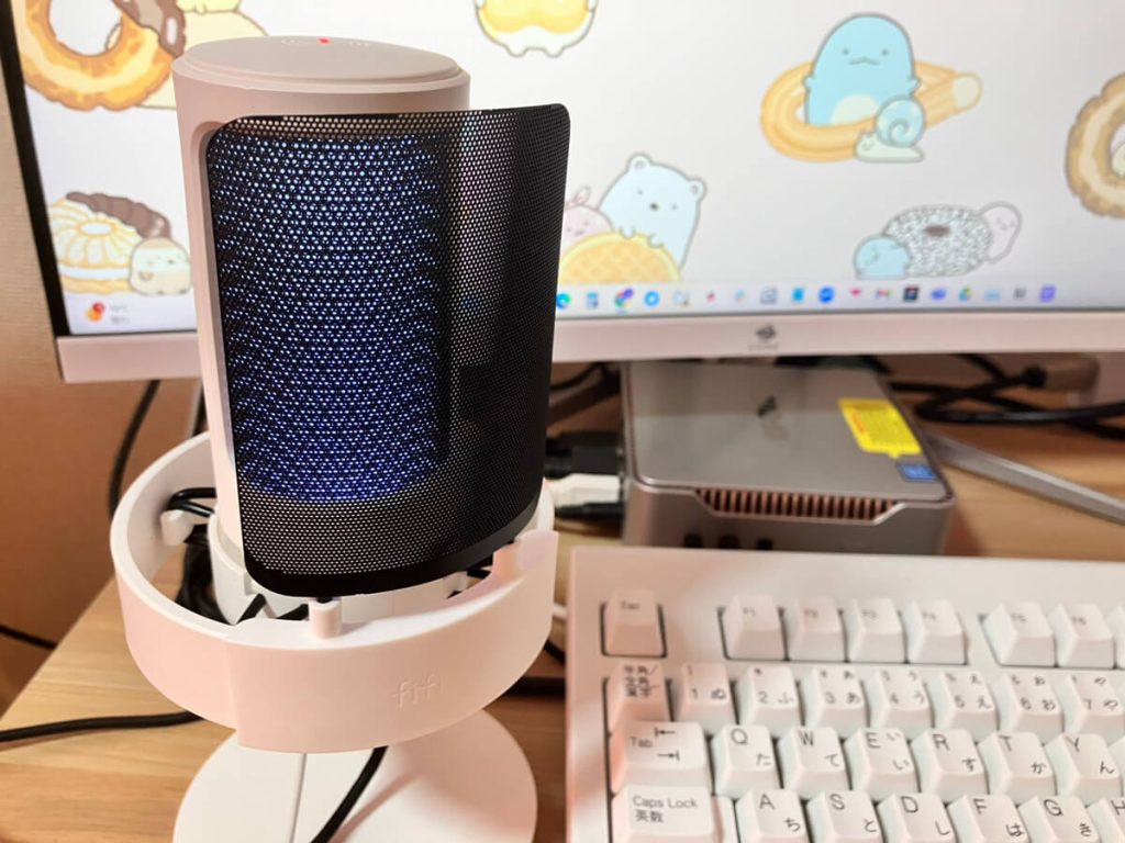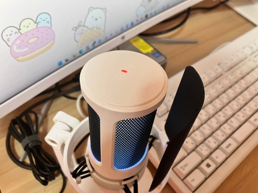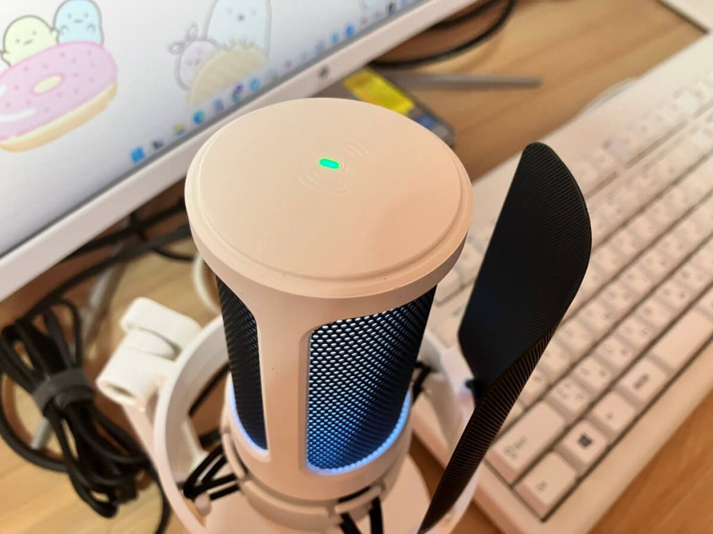 そのため、マイクアームを使って高い位置に設置する場合、座ったままでもミュート状態が一目で分かるようにRGBの色が変化すれば、さらに便利だと感じました。