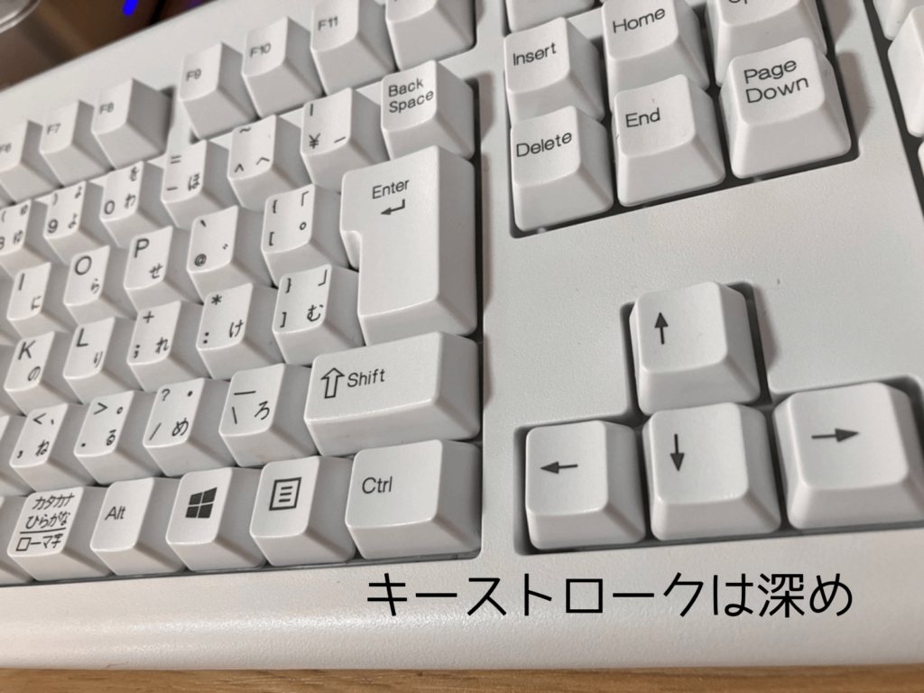 ゲーミングキーボードのカチカチした打鍵音ではありませんが、昔懐かしいしっかりした押し心地です