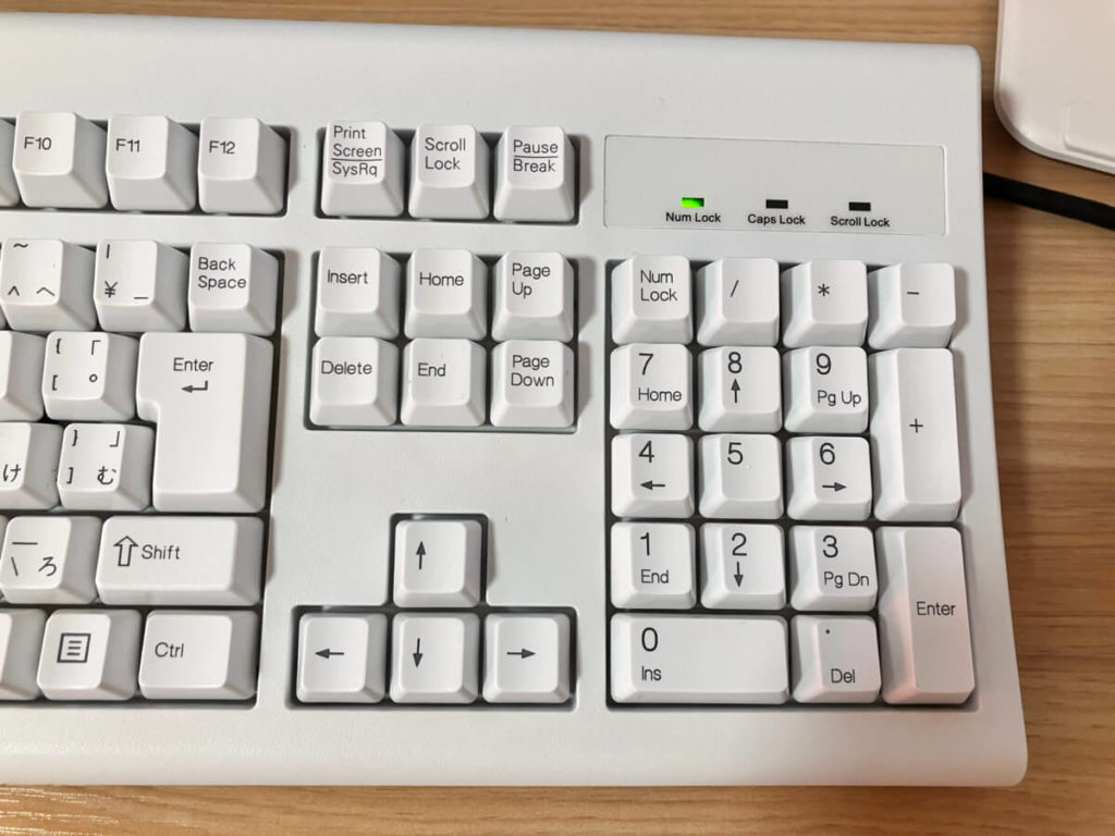 テンキー付きのフルサイズキーボードなので、「キーが足りなくて不便」ということがありません。